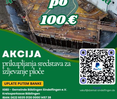 Read MoreDraga braćo i sestre, naša džamija je ušla u važnu fazu izgradnje – izljevanje ploče džamijskog prostora. To je temelj na kojem će, inšallah,