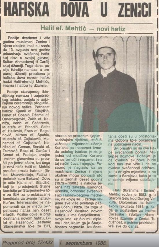 Hafiz Halil-ef. Mehtić bio je čovjek koji je znao spojiti blagost i odlučnost, riječ i djelo, vjeru i razum. Njegov život bio je svjedočanstvo da Kur’an nije samo knjiga koja se uči, već i putokaz koji se živi.